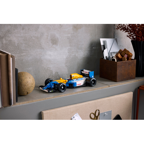 Hail the history of F1 innovation with the LEGO Icons Williams Racing FW14B & Nigel Mansell (10353) home and office desk decor model building kit for adults. Craft a replica of the legendary F1 race car that propelled Nigel Mansell to victory in the 1992 Formula 1 World Championship. Complete with a Nigel Mansell minifigure, this premium display model makes a captivating centerpiece and a great holiday or birthday gift for fans of F1.