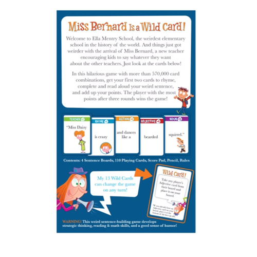 Welcome to Ella Mentry School, the weirdest elementary school in the history of the world. Things just got even weirder with the arrival of Miss Bernard, a new teacher encouraging kids to say whatever they want…about the other teachers! And that is just what you’ll do in this sentence-building game that proves school can be serious fun and certifiably weird!