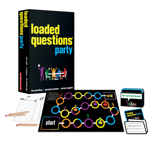 Friends. Family. Random Strangers. It’s Party Time! Race around the board trying to write the "favorite" answer while guessing which player wrote which answer to 200+ creative and comical Loaded Questions.