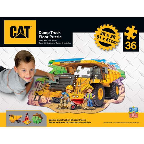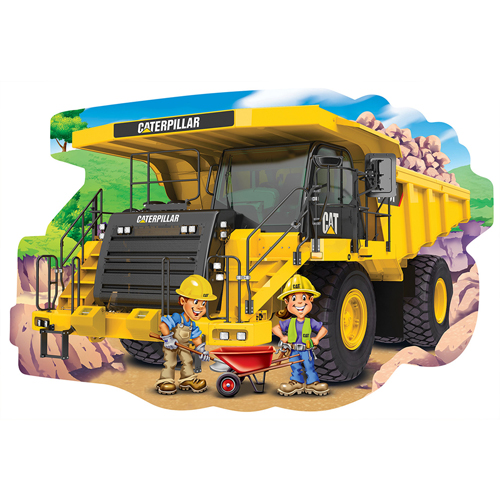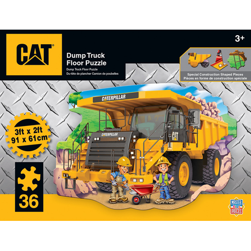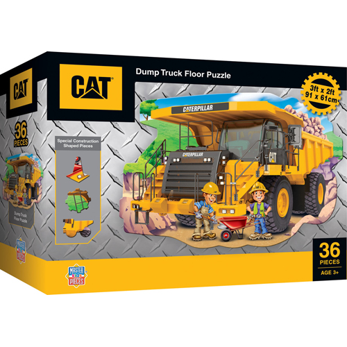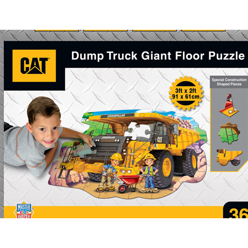 This Caterpillar puzzle features a giant yellow CAT dump truck, and construction workers ready to get the job done! This MasterPieces Caterpillar 36pc Floor Puzzle is great for children 3 and up. This giant 36 piece Shaped Floor puzzle has special construction-shaped pieces cut right into it. Can you find the tire-shaped piece? PUZZLE SIZE: 24"x36".