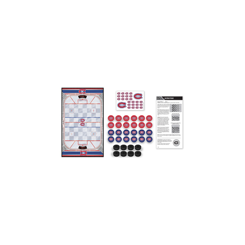This MasterPieces NHL Montreal Canadiens Checkers Game is the classic game of checkers where the king wears a Montreal Canadiens hockey puck! The Montreal Canadiens checkers game includes 24 Montreal Canadiens checkers pieces, 8 Montreal Canadiens hockey puck king pieces, a 13" x 21.375" Montreal Canadiens game board, 1 sticker sheet, and an instruction sheet.